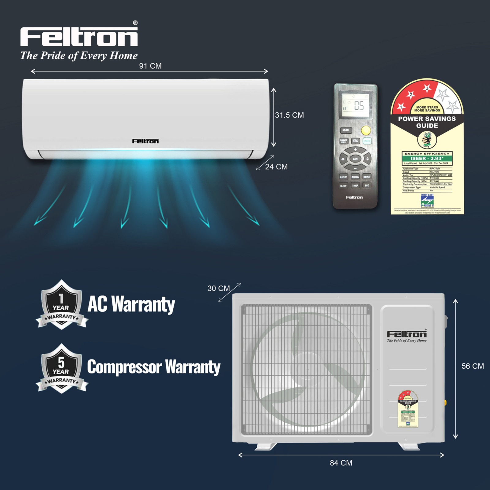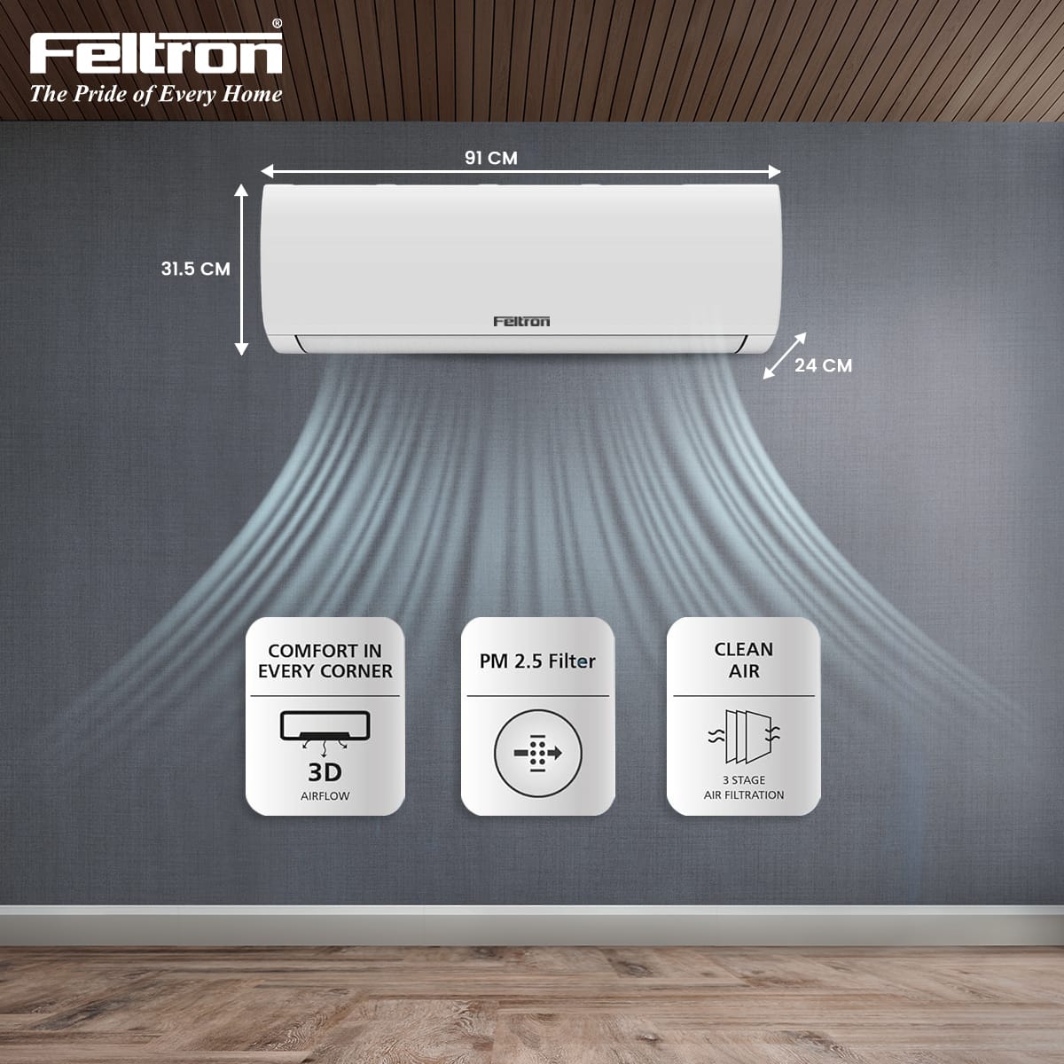 | Indoor Product Dimension (L x W x H) (cm) | 24 X 91 X 31.5 |